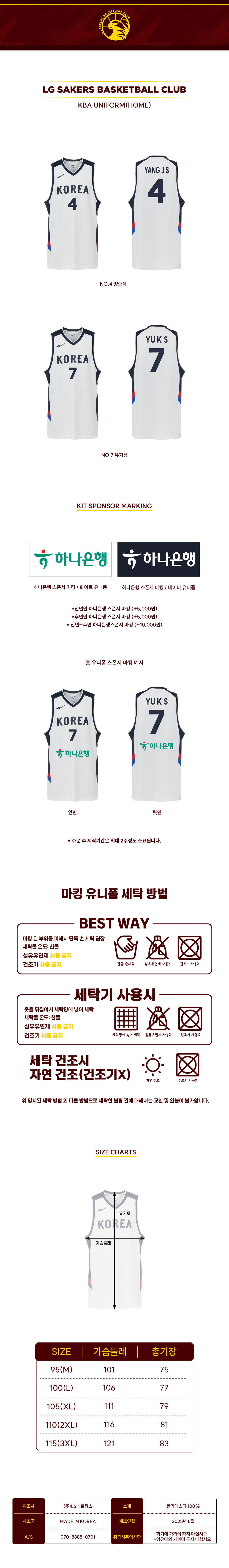 남자농구국가대표 어센틱 마킹 유니폼(홈)