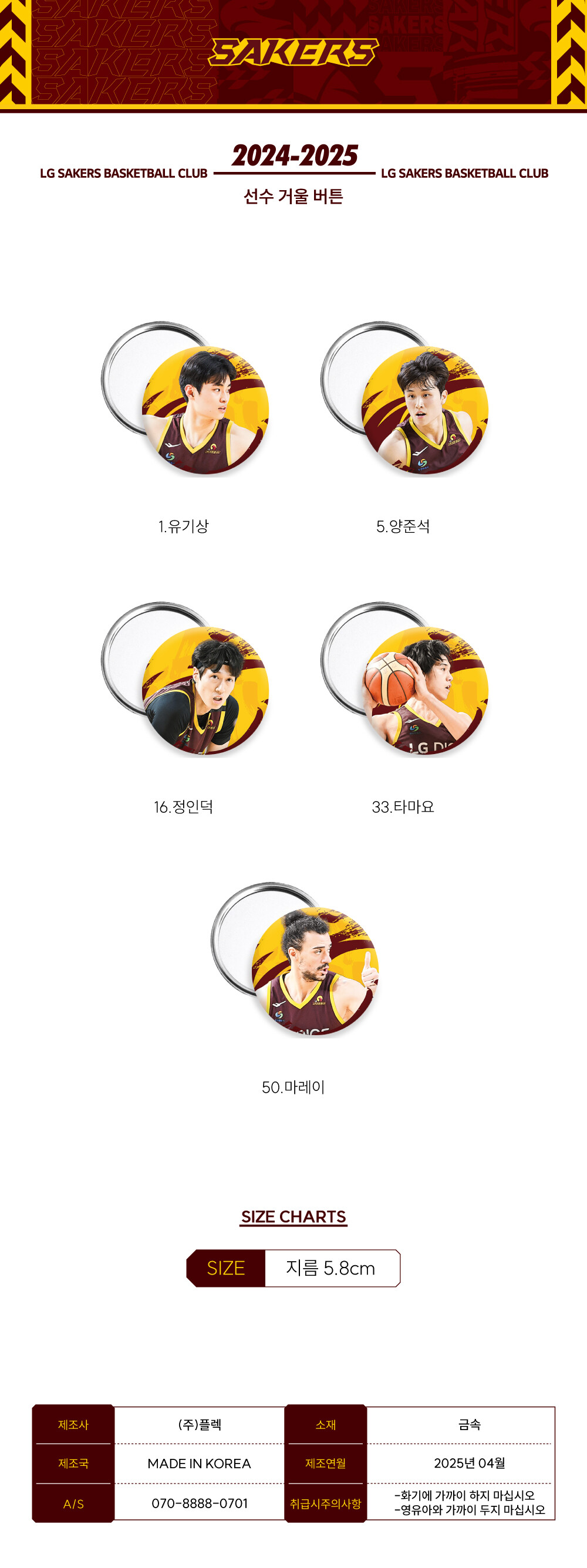 24-25 LG세이커스 플레이오프 선수 거울버튼