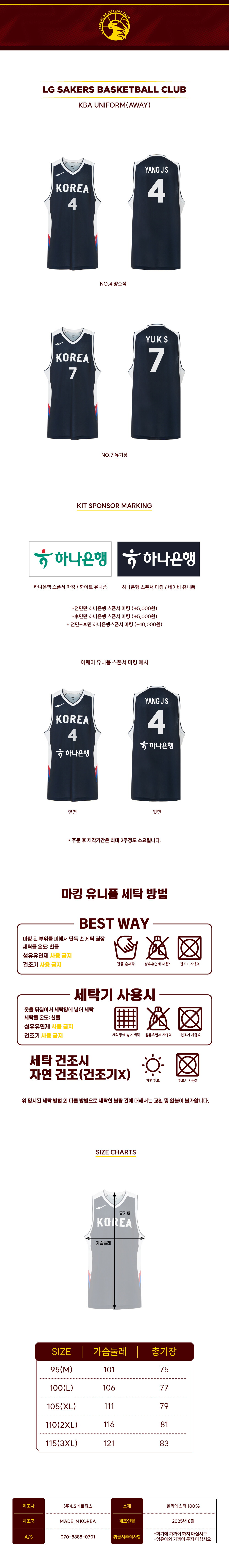 남자농구국가대표 어센틱 마킹 유니폼(원정)