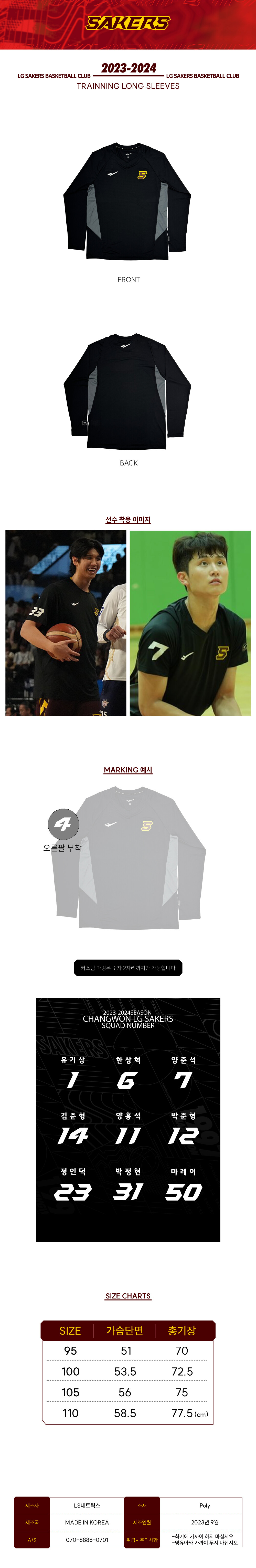 23-24 LG세이커스 긴팔 트레이닝복