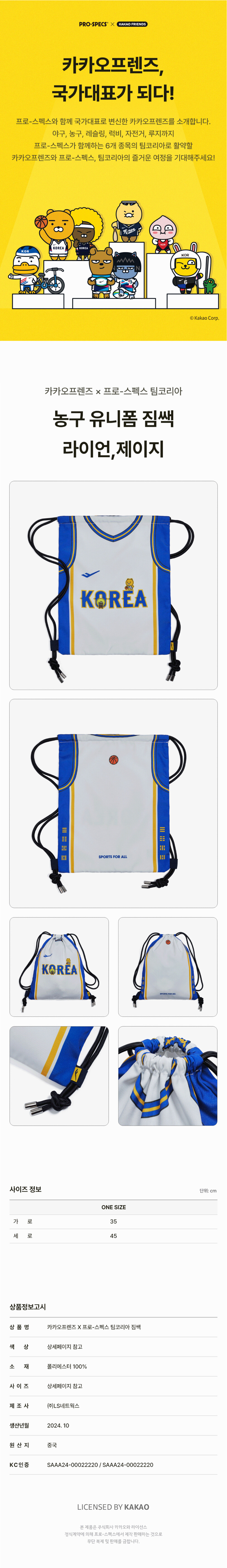 [카카오프렌즈 X 팀코리아] 농구 유니폼 짐색_라이언,제이지
